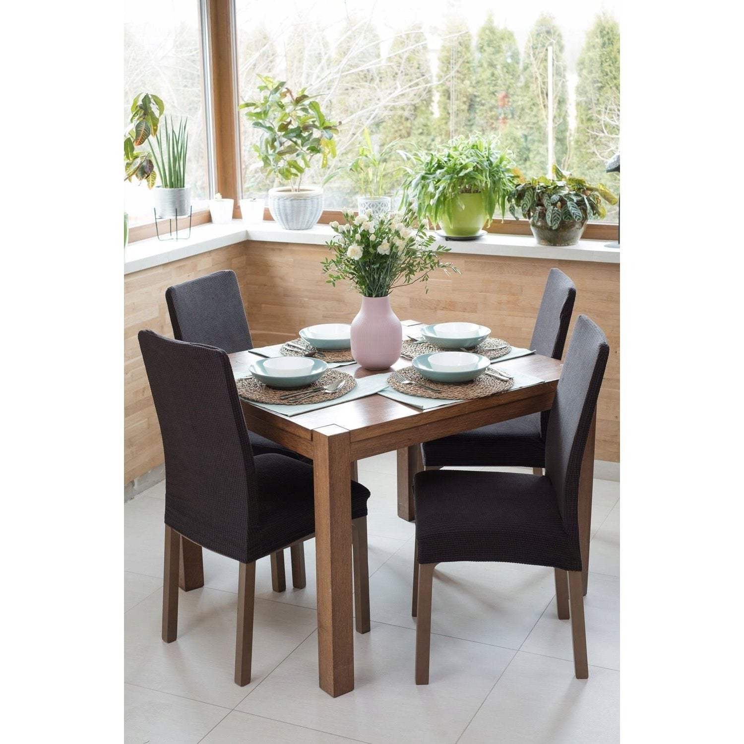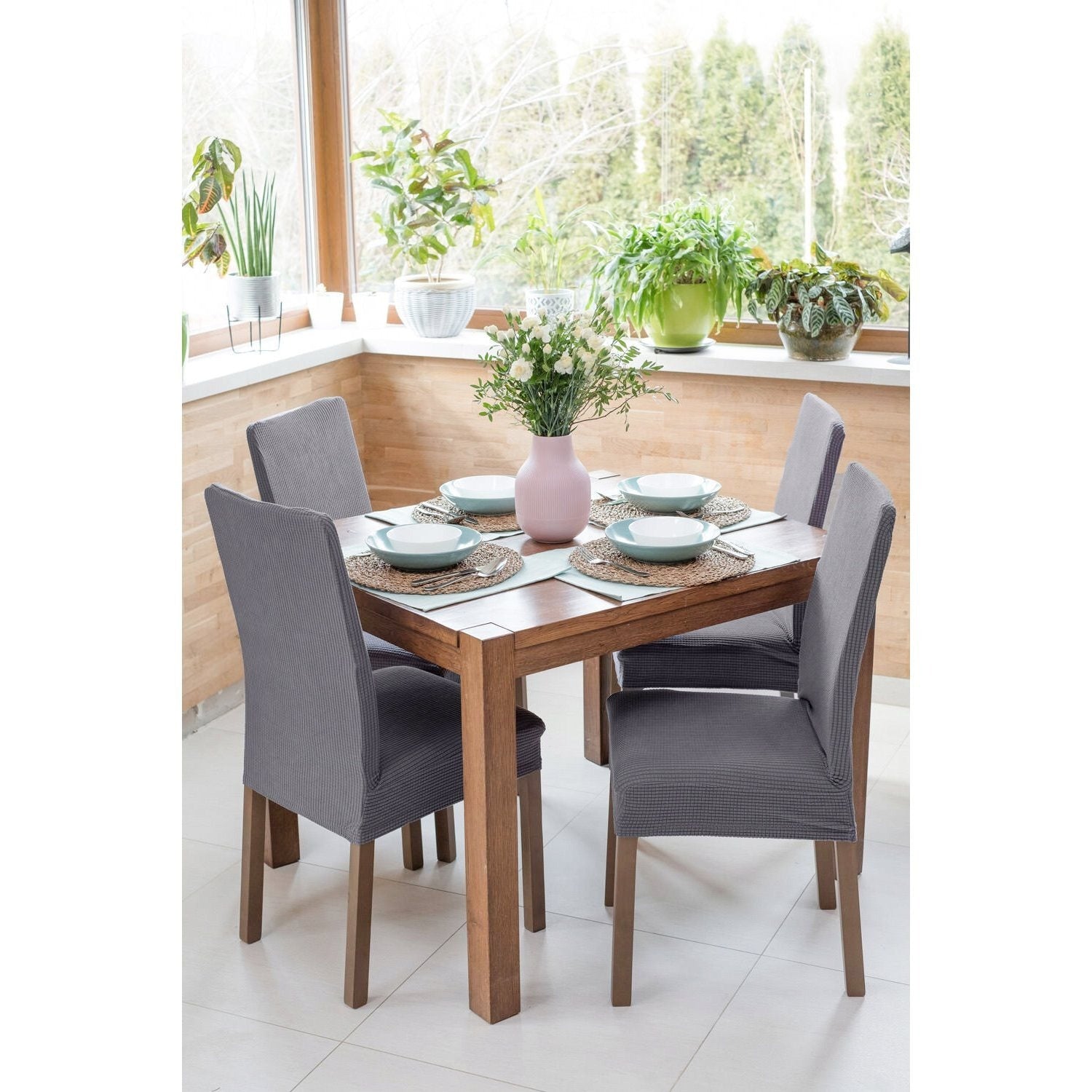 Elastyczny pokrowiec pasujący do większości krzeseł (Ikea, Jysk i innych). Wykonany z rozciągliwego materiału, który łatwo dopasowuje się do kształtu siedziska. Chroni krzesła przed zabrudzeniami, plamami, sierścią oraz codziennym zużyciem. Można prać w pralce.